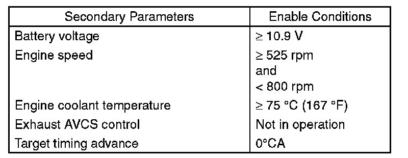 Perform the diagnosis continuously after warming up and while exhaust AVCS is not operating.