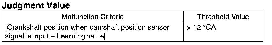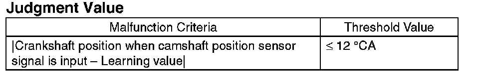 NOTE: Initial standard learning value is the value of crank angle initially input at the production plant. And then it will be updated every time normal judgment has been completed. Learning value will not be updated if NG judgment occurs because timing belt or chain derails suddenly in process or because wrong assembly occurs during servicing.