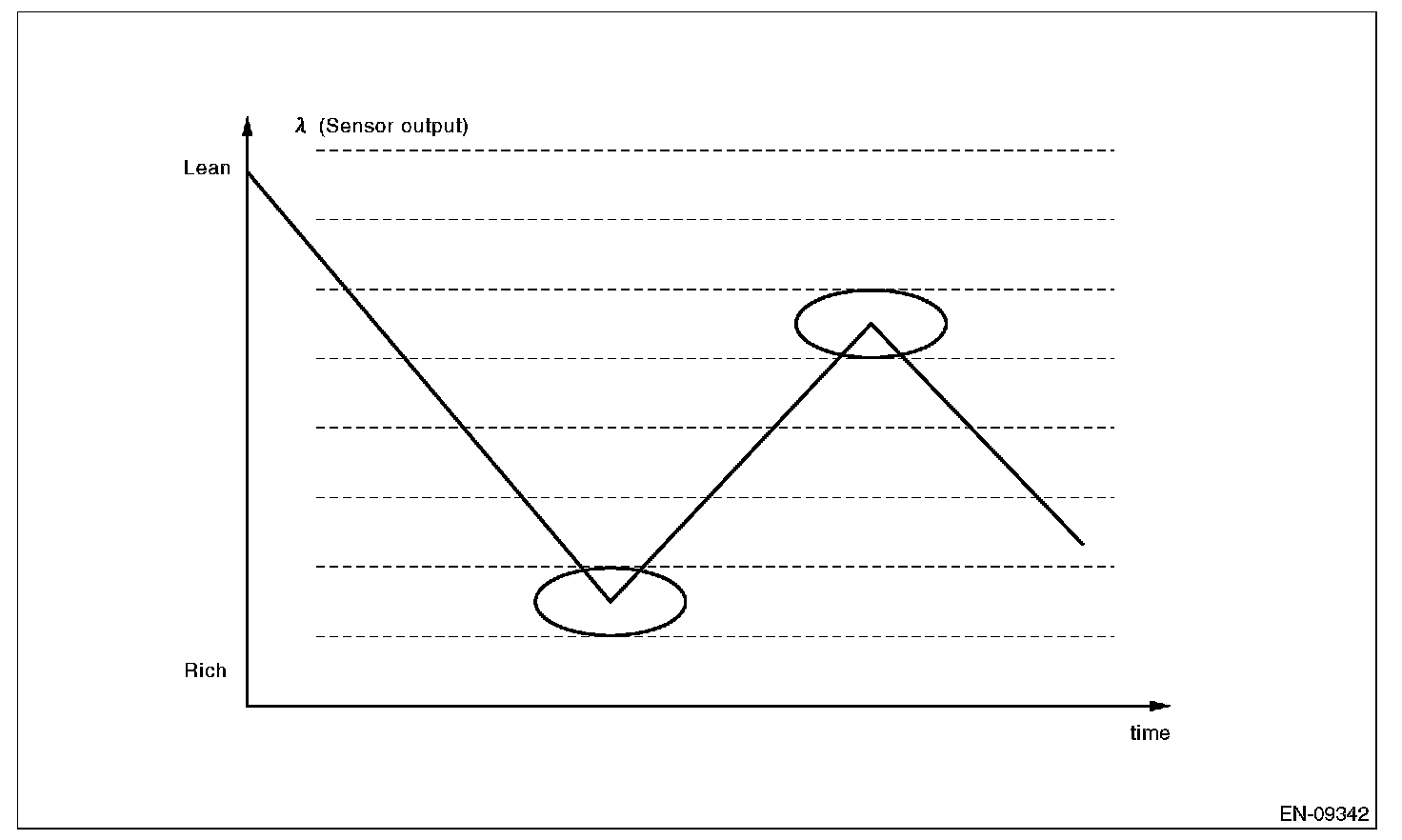 For diagnosis, detect the trouble by processing the lambda waveform in normal driving without forcibly changing the target air fuel ratio.