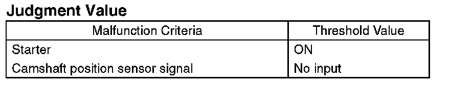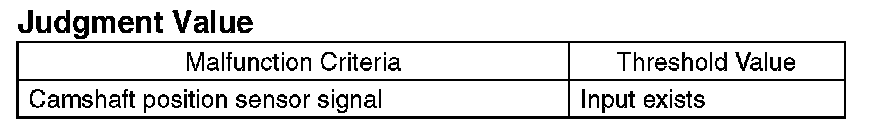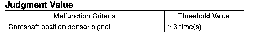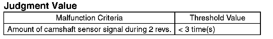 Judge as NG when the condition where the number of camshaft position sensor signals are less than 3 times during 2 engine speed. continues.