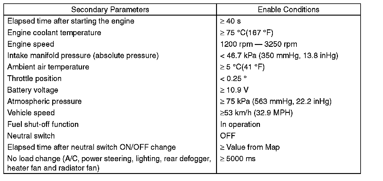 During deceleration fuel cut from 53 km/h (approx. 33 MPH) or more, perform diagnosis once.