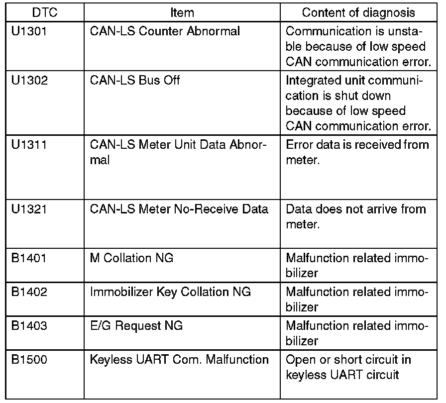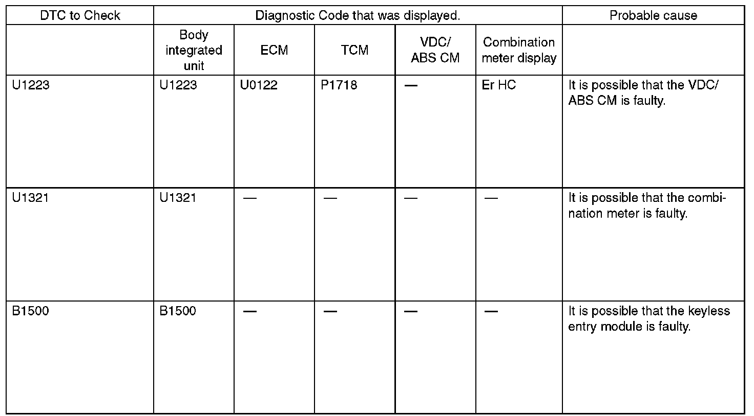 DTC TABLE