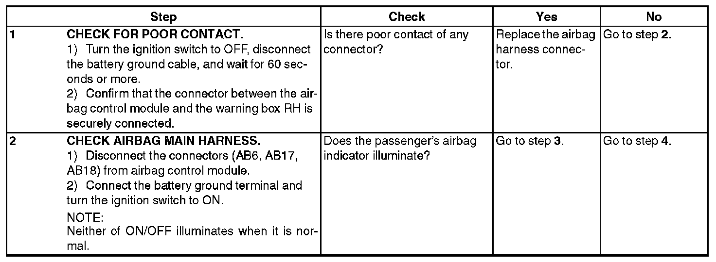 DTC 26 PASSENGER'S AIRBAG INDICATOR FAILUREDTC DETECTING CONDITION:
