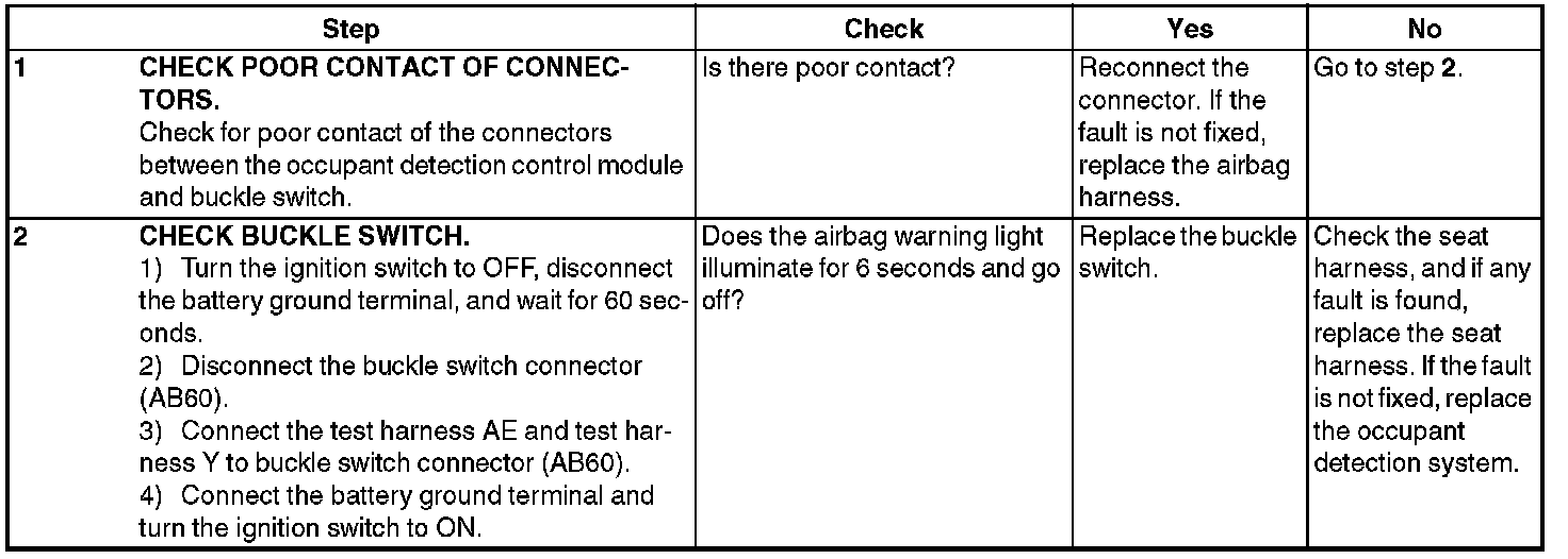 - Passenger's buckle switch circuit is open, shorted or shorted to ground.