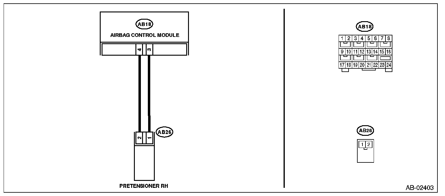 - Seat belt pretensioner (RH) circuit is shorted to power supply.