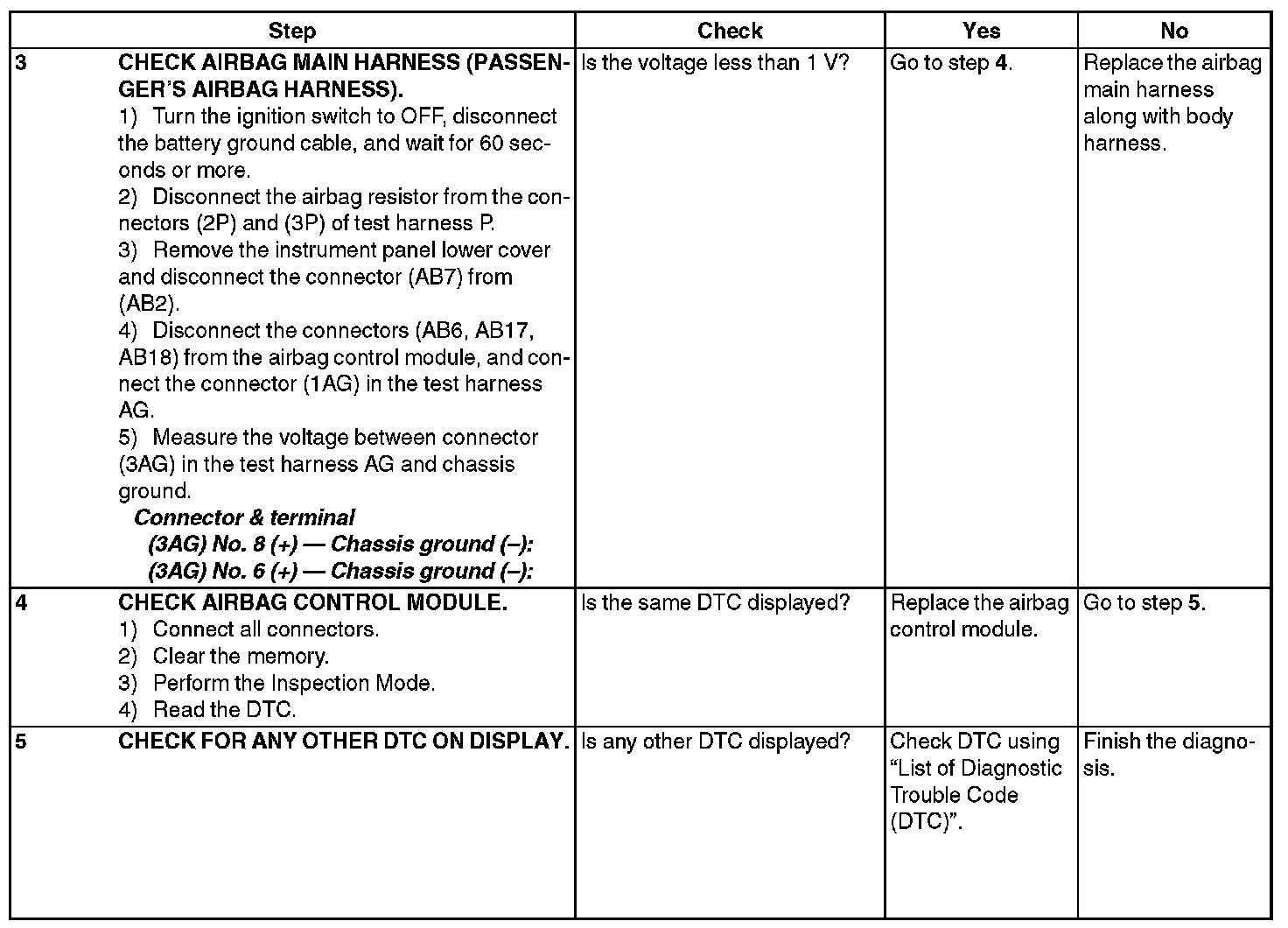- Airbag module harness circuit (Passenger's side) is shorted to power supply.