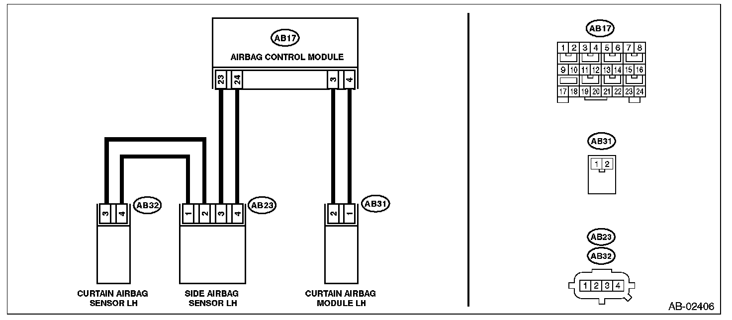 - Curtain airbag harness (LH) is shorted to power supply.