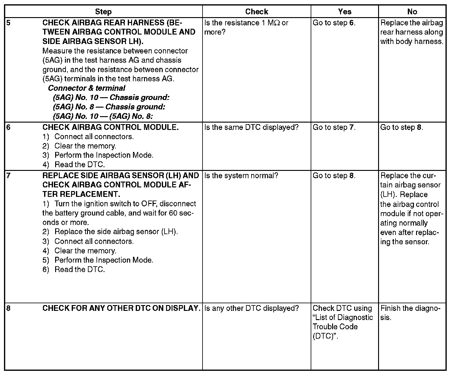 - Open or short circuit in harness of side sensor bus (LH).