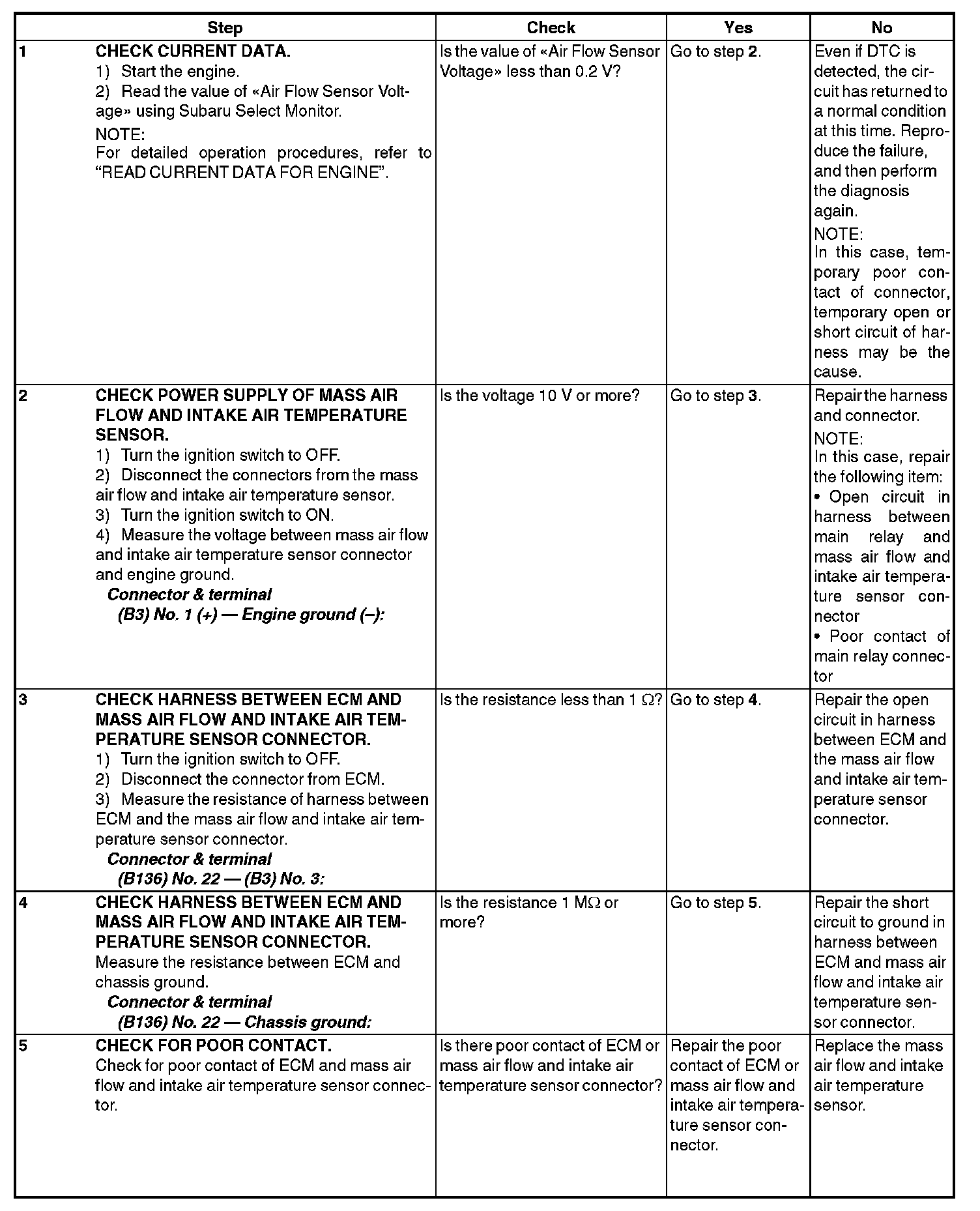 DTC P0102 MASS OR VOLUME AIR FLOW CIRCUIT LOW INPUTDTC DETECTING CONDITION: