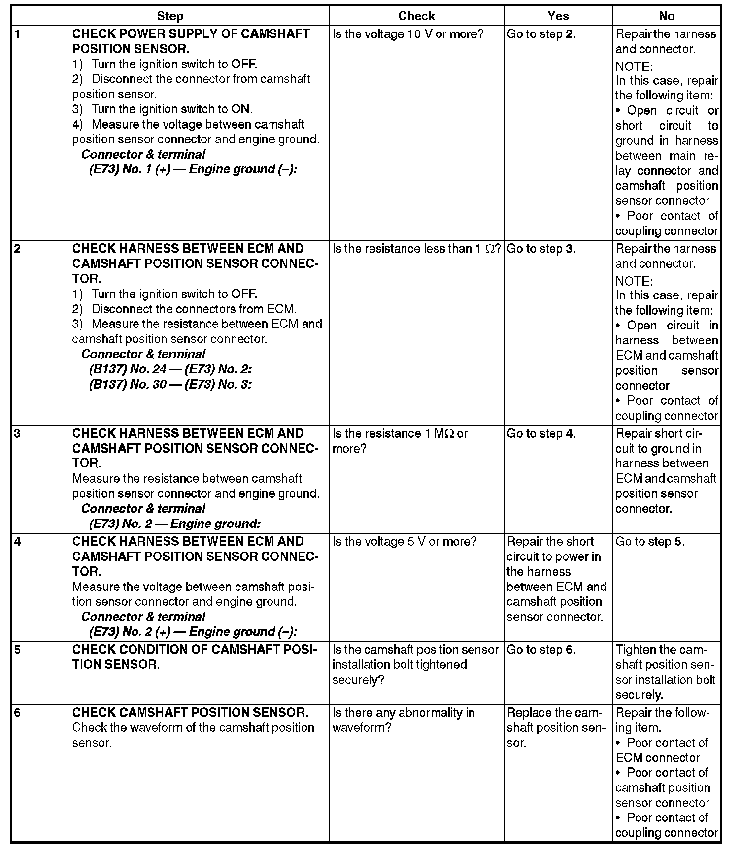 DTC P0340 CAMSHAFT POSITION SENSOR "A" CIRCUIT (BANK 1 OR SINGLE SENSOR)DTC DETECTING CONDITION: