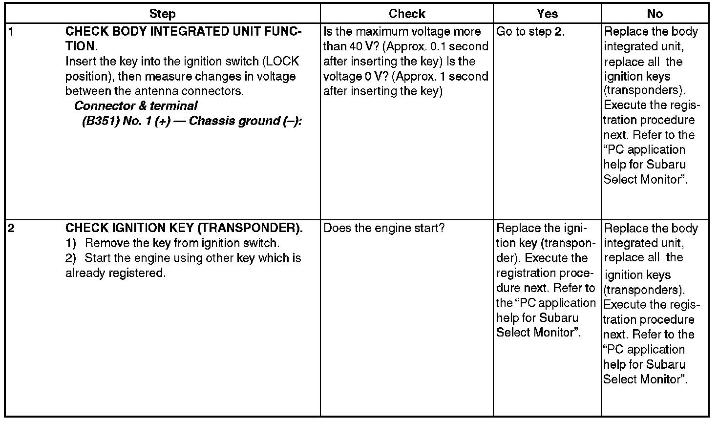 Failure of body integrated unit to verify key (transponder) ID code or transponder key failure