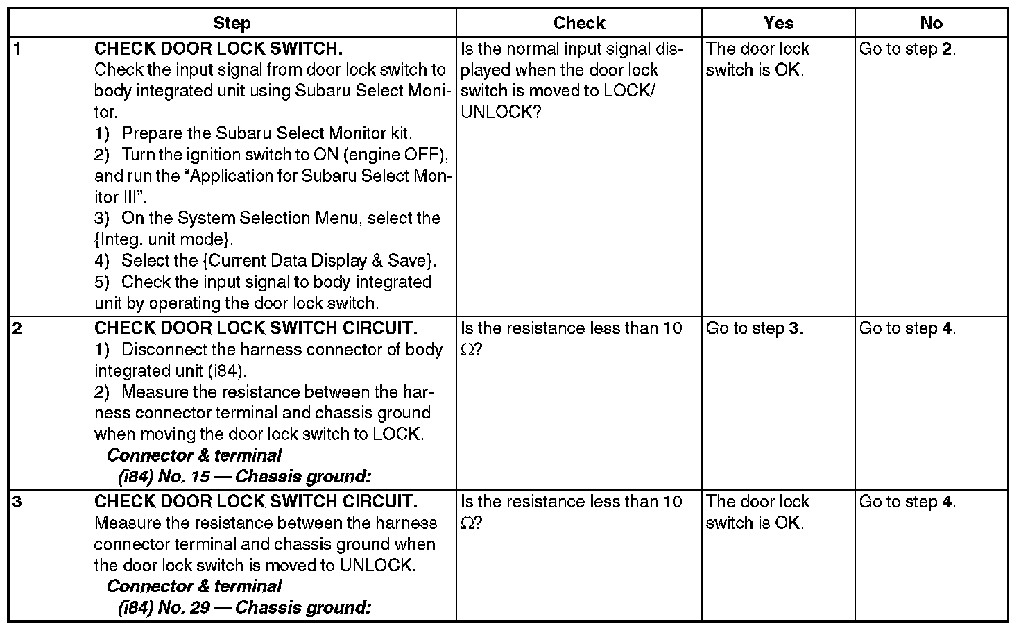 CHECK DOOR LOCK SWITCH