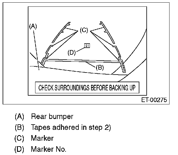 2. Adhere tapes on the floor of the vehicle rear side as shown in the figure, as the datum point of makers.