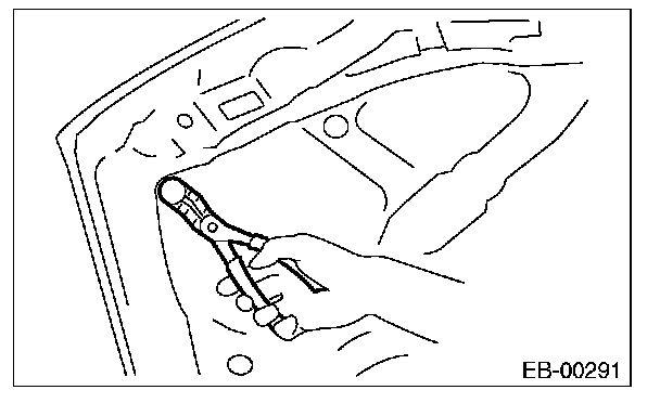 NOTE: If the front hood clip is removed with excessive force, the seal may be damaged. Be sure to use clip remover to remove.