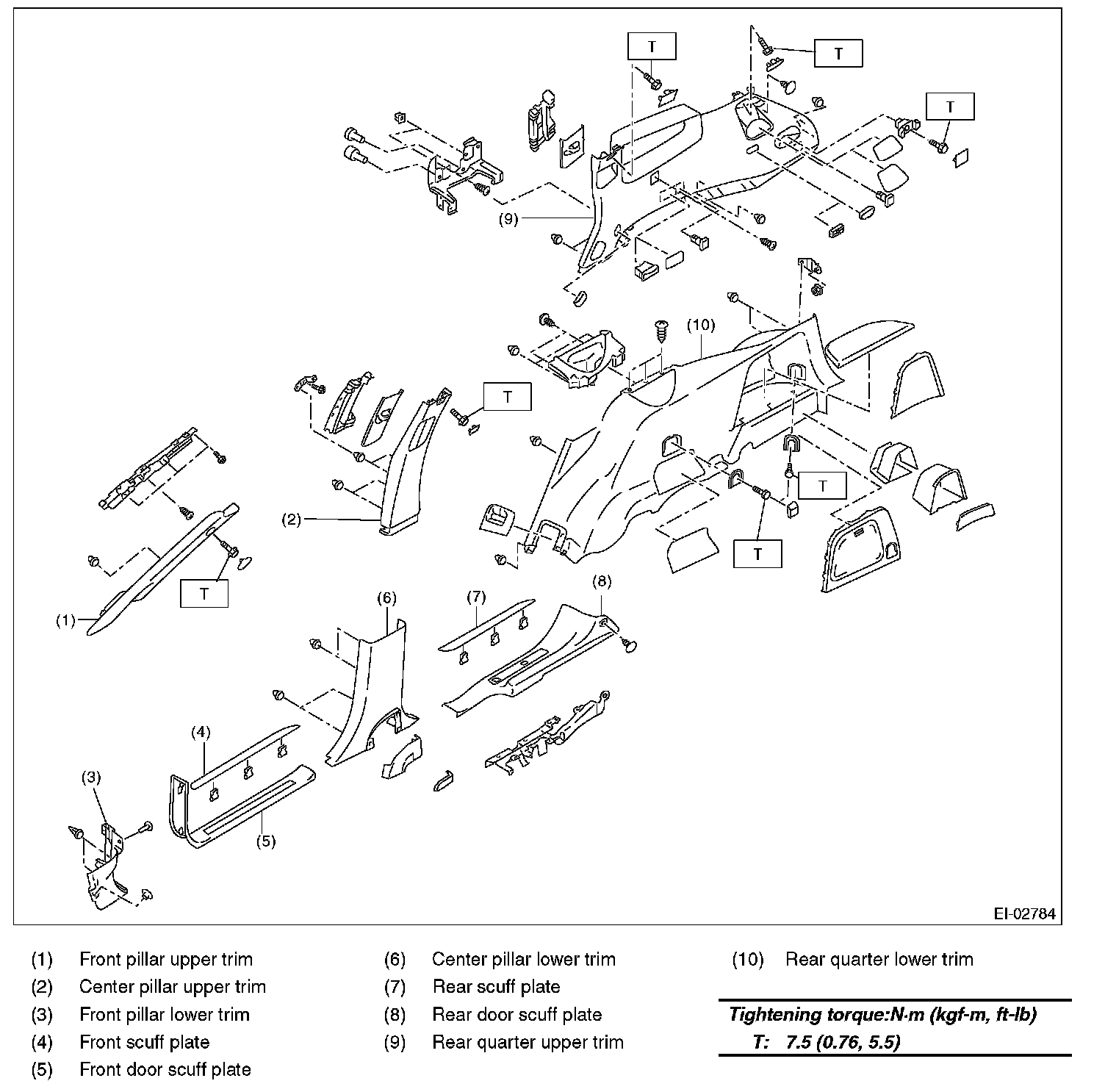 NOTE: When installing the side trim, make sure that the clips and hooks match the holes of vehicle body before pushing the parts.