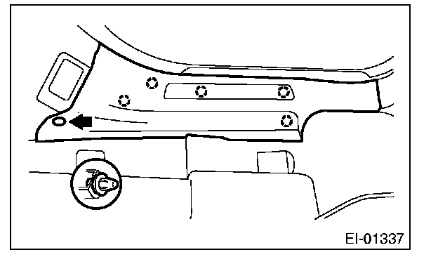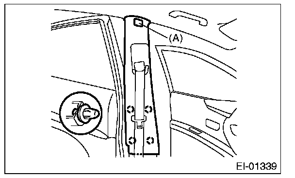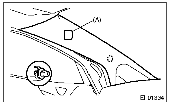 1. Remove the cap (A) on the upper side of pillar trim, and remove the bolt inside.