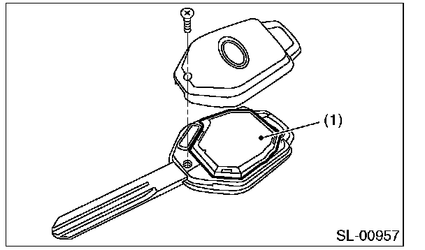 1. Disassemble the keyless transmitter, and take out the transmitter case (1).