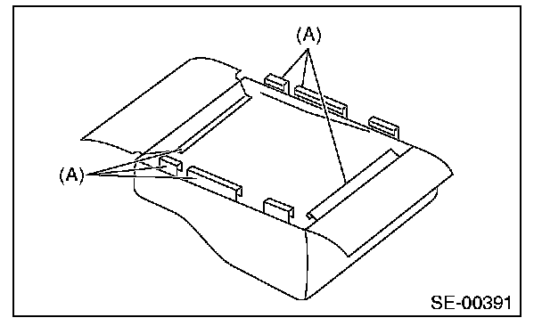 - If the seat cushion cover is removed or replaced, make sure to perform occupant detection system adjustment after installing the seat. [Ref. to SYSTEM CALIBRATION (REZEROING), OPERATION, Subaru Select Monitor.] Failure to do so may prevent the passenger's airbag from operating properly.