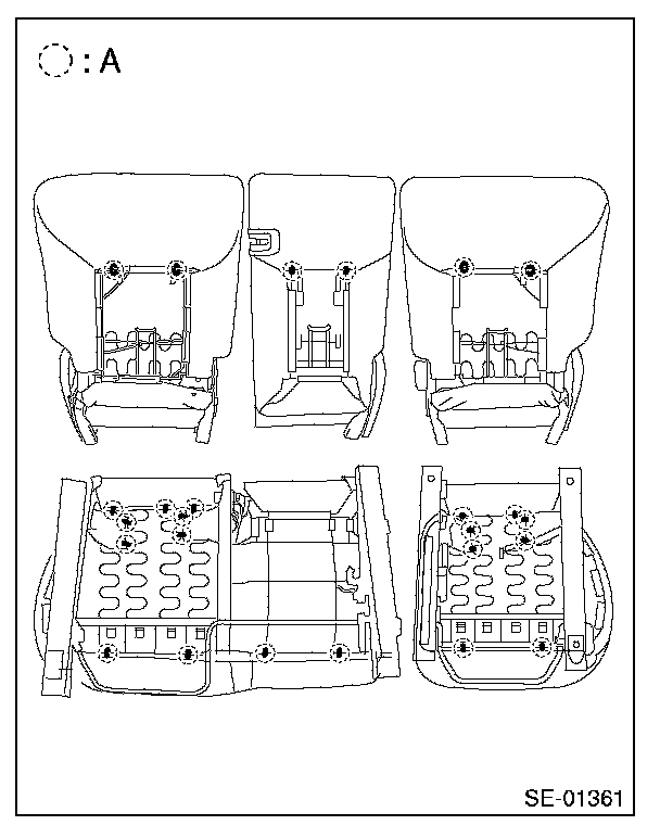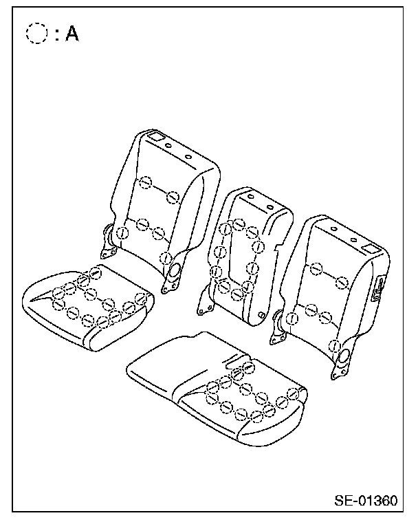 18. Remove the seat cushion hog rings (A), and then remove the seat cushion cover from seat cushion.