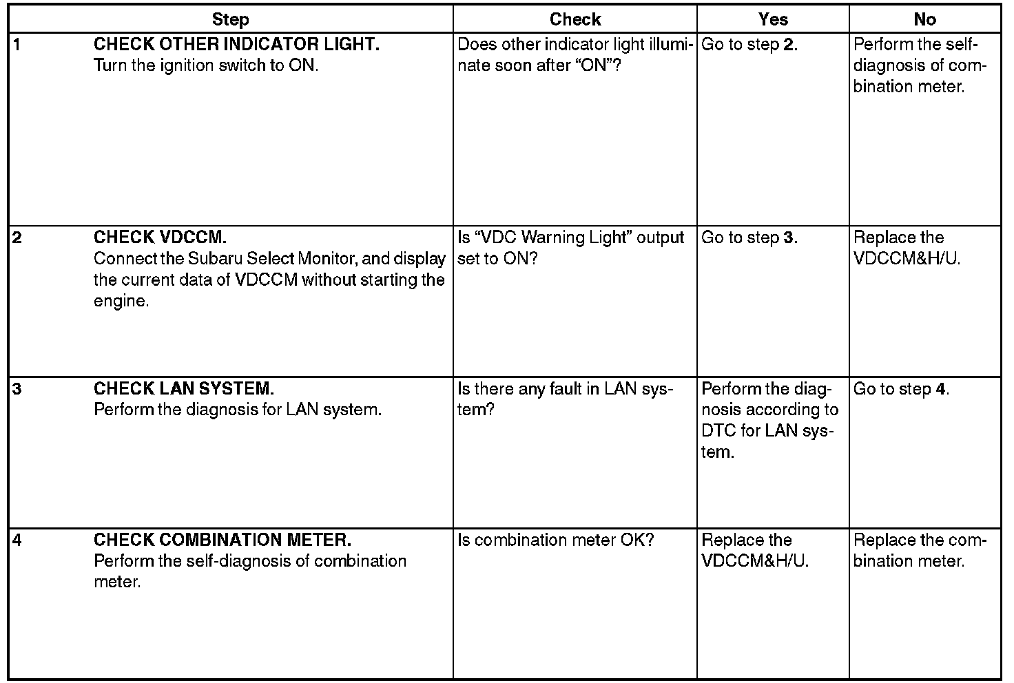 VDC WARNING LIGHT AND VDC INDICATOR LIGHT, TCS OFF INDICATOR LIGHT DO NOT COME ON