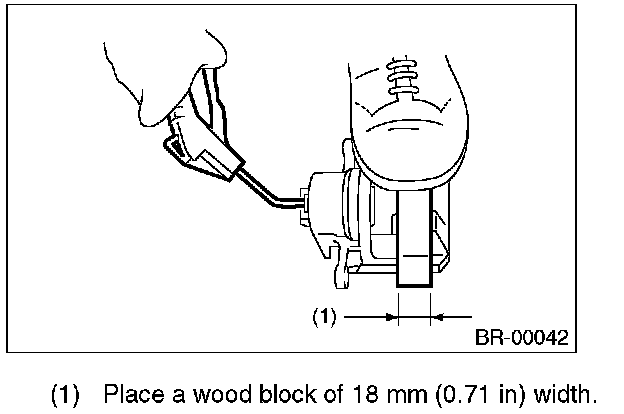 2) Place a wooden block in the caliper body as shown in the figure to prevent the piston from jumping out and being damaged.