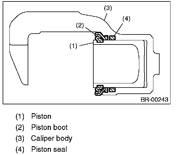 2) Apply a coat of brake fluid to piston seal and install the piston seal to the caliper body groove.