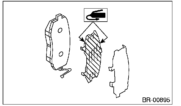 2) Apply a thin coat of Molykote AS880N (Part No. K0777YA010) or grease contained in the pad kit to both surfaces of the pad and inner shim.
