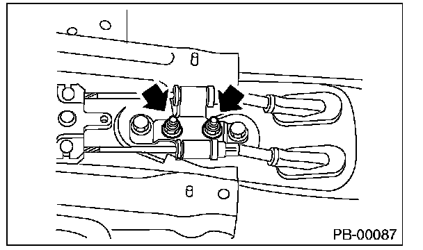 7) Remove the cable clamp, and remove the parking brake cable from the guide.
