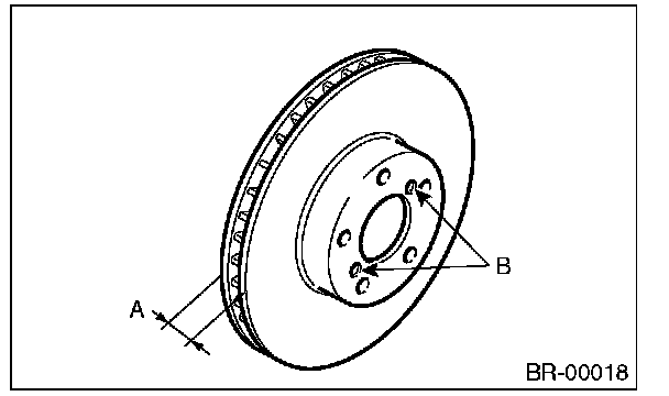 (2) If disc rotor is seized up on the hub, drive the disc rotor out by pushing two 8-mm bolts in holes B on the rotor.
