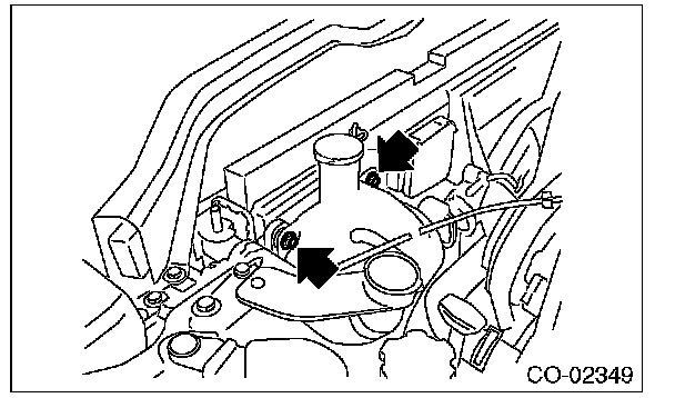 14) Remove the bolts on the upper side of the radiator fan shroud.