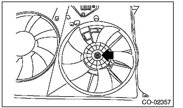 Check that the radiator main fan, radiator main fan shroud and main fan motor do not have deformation, cracks or damage.