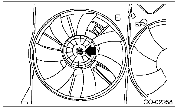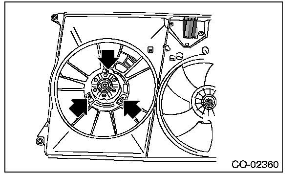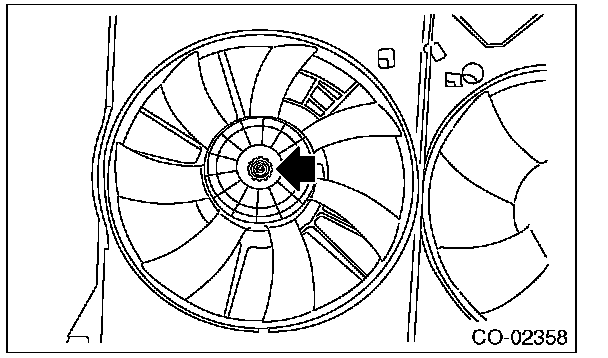 Check that the radiator sub fan, radiator sub fan shroud and sub fan motor do not have deformation, cracks or damage.