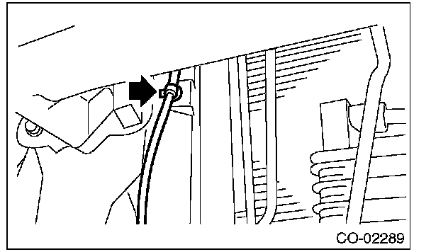 (3) Remove the front hood cable fixing clip from the radiator stay.