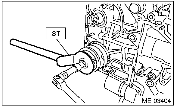 1) Install the cam sprocket. To lock the camshaft, use the ST.