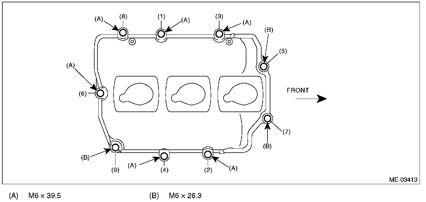(3) Tighten the rocker cover bolts in the numerical order as shown in the figure.