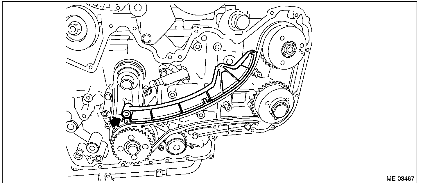 15) Install the chain tensioner (LH) and pull out the stopper pin.