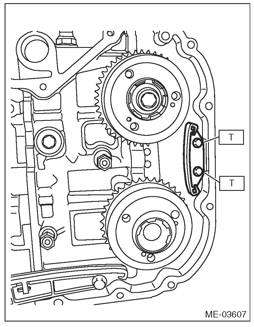 20) Remove the idler sprocket, and then remove the idler sprocket and timing chain (main).