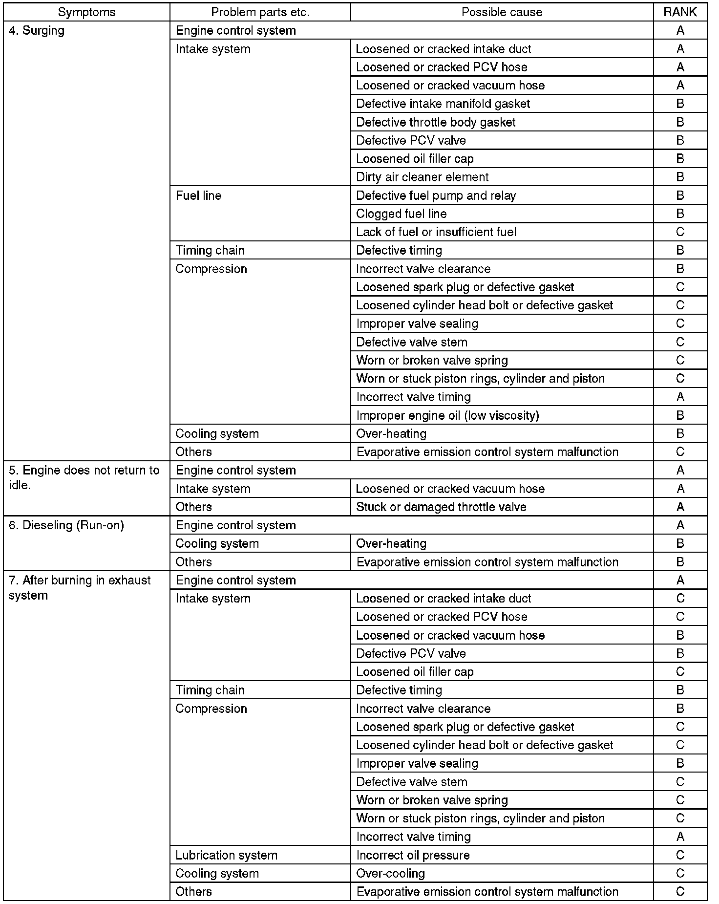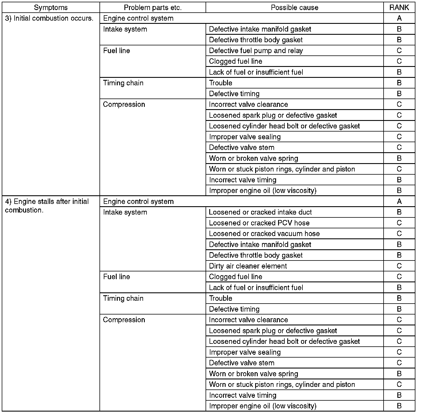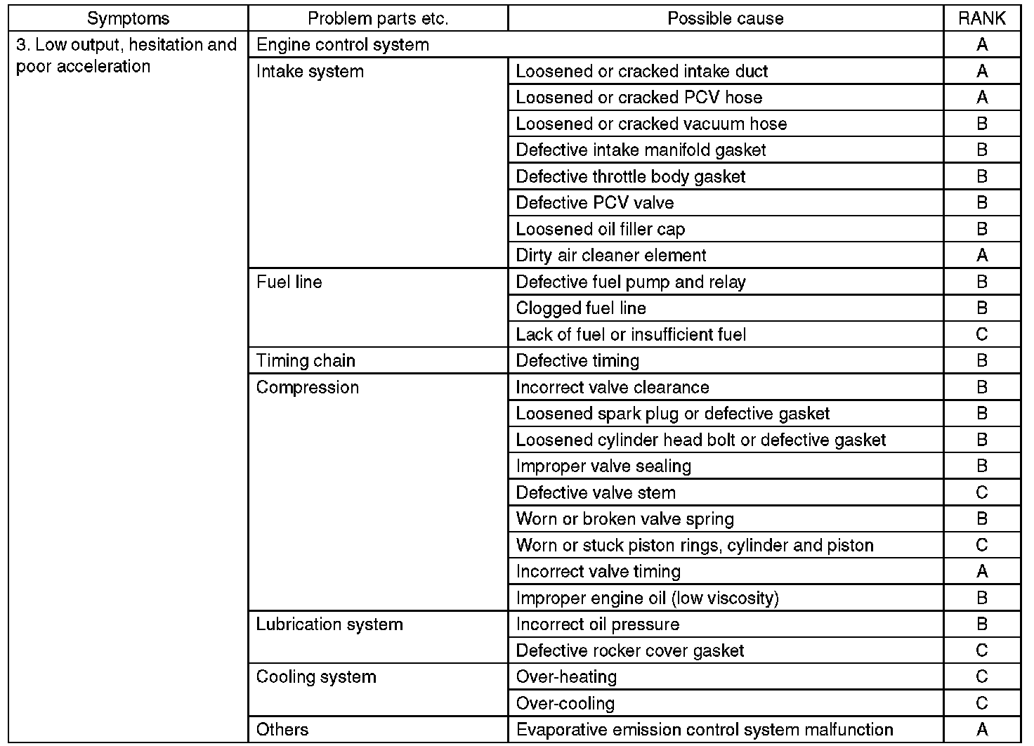 The "RANK" shown in the chart shows the possibilities of the cause of trouble in order from "Very often" to "Rarely".