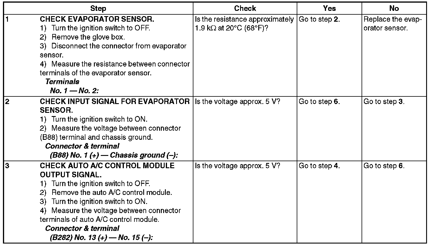 NOTE: When the sunload sensor check is performed indoors or in the shade, it could be diagnosed as having an open circuit. Always check the sunload sensor with the sun shining on it.