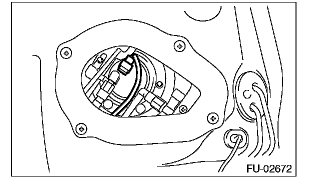 - Align protrusion of the fuel sub level sensor to the cutout in the fuel sub level sensor upper plate.