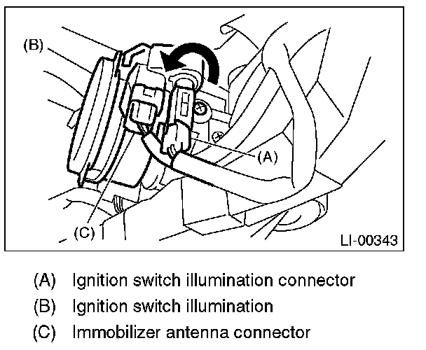 4. Turn the ignition switch illumination connector to the left and disconnect it.