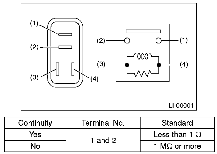 Connect terminal No. 4 to the battery positive terminal and terminal No. 3 to the battery ground terminal, and measure the resistance between tail and illumination relay terminals.