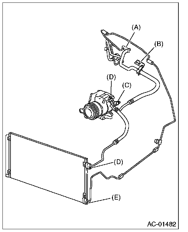 4. Remove the low-pressure hose attaching bolts (C).