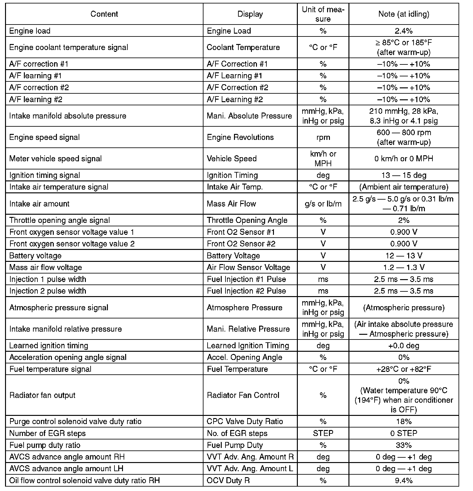 2. READ CURRENT DATA FOR ENGINE (NORMAL MODE)