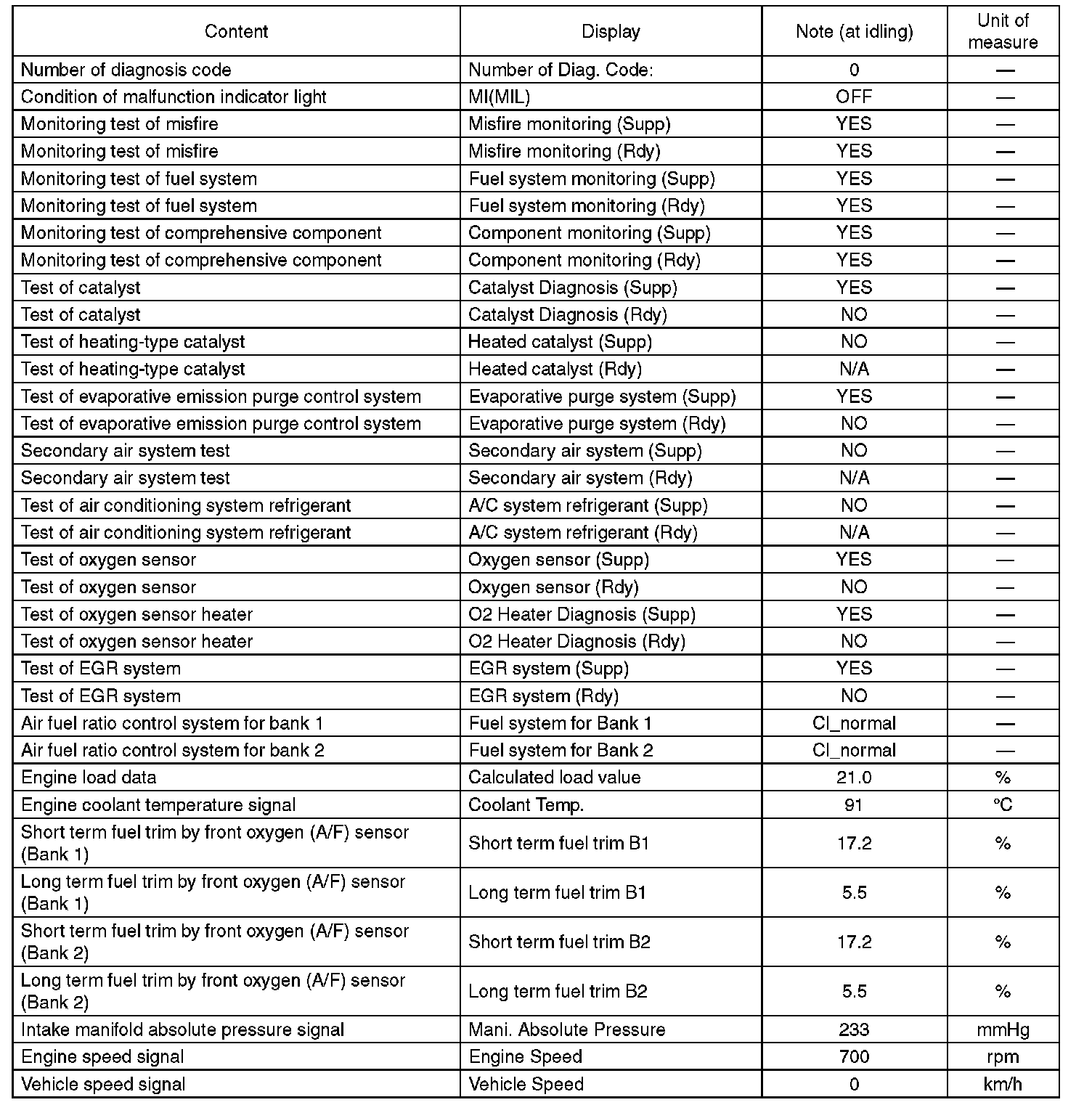 3. READ CURRENT DATA FOR ENGINE (OBD MODE)