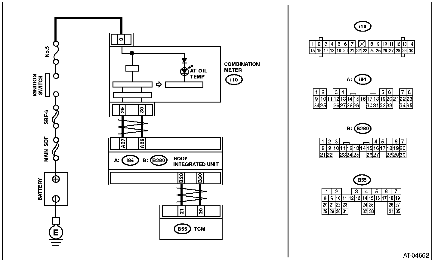 When the AT OIL TEMP light does not operate normally, check the AT OIL TEMP light circuit.