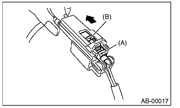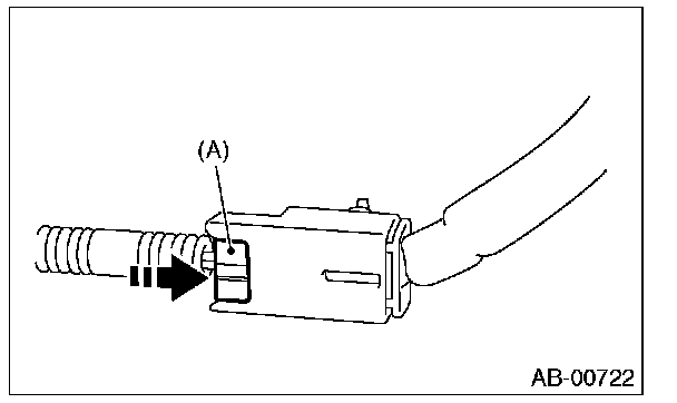 2. While holding the slide lock (A) in moved position, disconnect the connector.