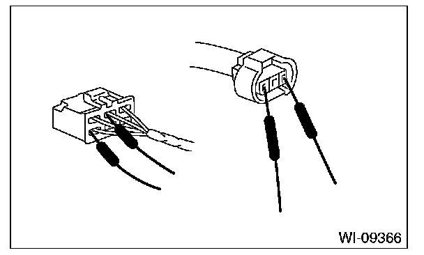 6. When checking continuity between connector terminals, or measuring voltage across the terminal and ground, always contact tester probe(s) on terminals from the wiring connection side. If the probe is too thick to gain access to the terminal, use "mini" test leads.
