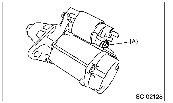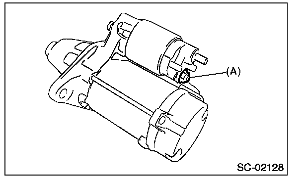 1. Remove the nut which holds terminal M (A) of the magnet switch assembly, then disconnect the harness from the terminal.