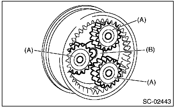 4. Assemble the planetary gear (A) and washer (B) to the internal gear.